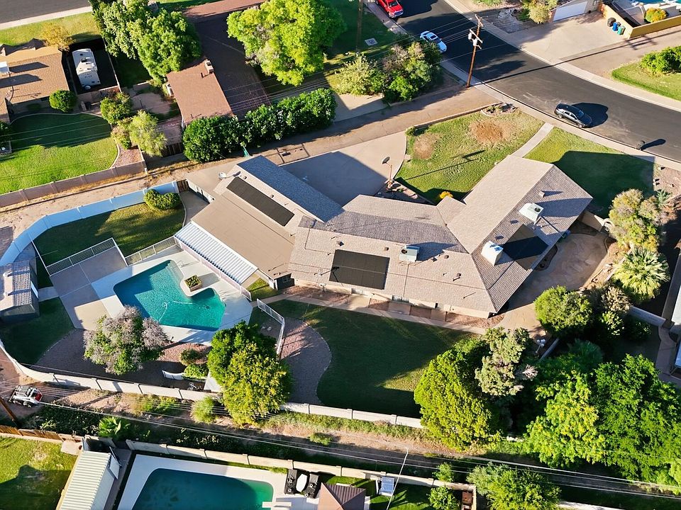 Location, Location, Location! This Multi-generational home on a 1/2 acre in North East Mesa offers the perfect blend of space, comfort and versatility. Located near the 101 and 202 freeways minutes from Tempe, ASU, Sky Harbor, and downtown Phoenix. Multi-generational is an understatement, the home has 2 complete separate self contained living areas. This home has 2 kitchens, 2 living rooms, 2 laundry rooms, 6 bedroom, 5 bathroom ideal for extended family, guests, or rental opportunities. This rare lush green 1/2 acre plus estate nestled in the heart of Mesa has SRP flood water irrigation. Each side of the home has a private patio and grass yard. The common area offers a sparkling Pebble Tech pool and poolside cabana complete with a shower and a toilet. Whether you're seeking a spacious family compound or a flexible investment opportunity this property delivers unmatched potential in a prime location. Don't wait and miss out, come see it today.