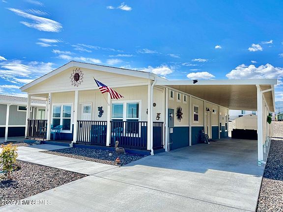 This beautifully maintained home in the heart of Camp Verde's Verde Ranch Estates offers more than just comfort - it delivers a lifestyle. Pickleball courts, pool, hot-tub, club house, game room w/ pool table, conference room, fitness center, grilling pavilion, playground, dog parks, putting green, horseshoes +more. This property offers stunning views through custom-windows that perfectly frame the iconic Sedona Red Rocks & the San Francisco Peaks of Flagstaff! With additional cabinetry & extra storage provided throughout. Covered front porch & long carport. Perfectly situated just minutes from I-17, you'll enjoy convenient access in every direction. Head northwest: Sedona hiking trails, head North: Flagstaff's winter snow season, or go South: Anthem's shopping, all under one hours' time. No age restrictions. $565/month with community approval. Verde Ranch Estates throws BBQ's, potlucks, has water aerobics, and very community based.