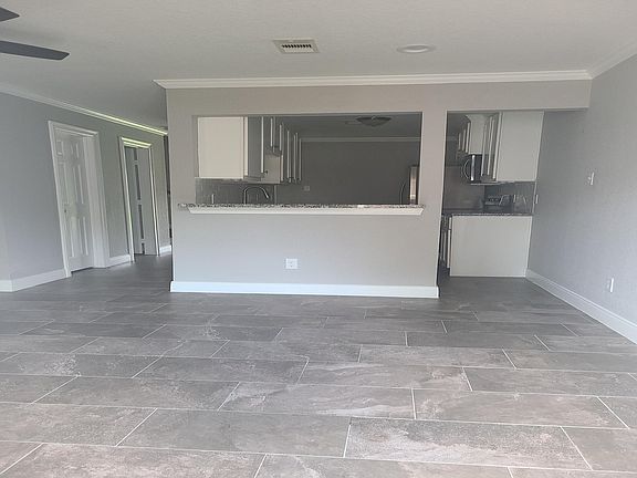 Modern tile flooringComfortable carpetFenced back patioGranite countertopsStained steel appliancesWhite cabinetsFully updated kitchen