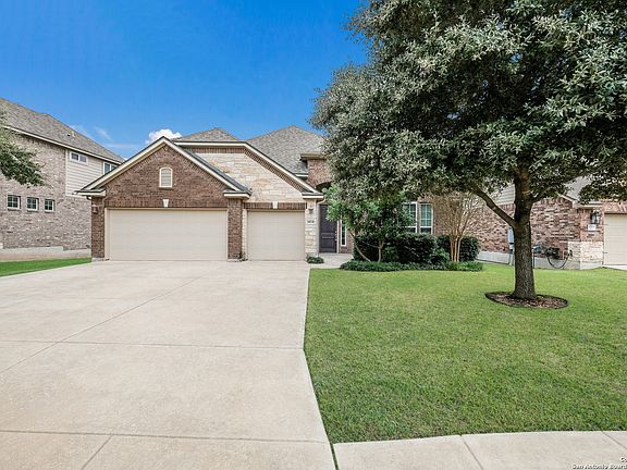 NEW PRICE CUT!!! Exquisite Mother-in-law or Guest Suite! Welcome to this meticulously maintained single-story home with a greenbelt nestled in Triana's highly sought-after gated community in HELOTES. This Like-new, move-in-ready home offers four oversized bedrooms with three baths and over 3000 square feet of beautifully designed open-concept living space for entertaining. The no-threshold at the front entrance makes wheelchair accessibility easy. Enjoy your cozy nights by the crackling fireplace or the grand game/bonus room with its private balcony. This extra living space has endless possibilities. This home's kitchen is the heart, with granite countertops, a huge island, gas cooking, and plentiful 42" cabinets that flow effortlessly into the living room. This home boasts ENTERTAINMENT with a covered patio, Trex decking, and privacy fence for outdoor barbecues and parties. The three-car garage is oversized with epoxy floor coating and a large, leveled, wide driveway for plenty of parking. This home will conserve energy with its solar panels. The new roof in 2023 will also provide peace of mind as we enter the winter months. This home is minutes from shopping at La Cantera and Old Town Helotes. You will also be near Fiesta Texas, The Rim, SeaWorld, USAA, Valero, IH10 and 1604. A must-see! Schedule your showing today!