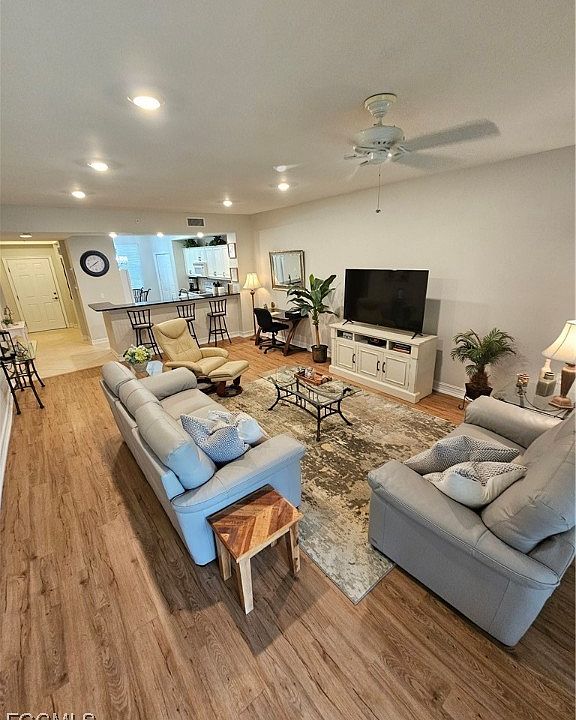 PET FRIENDLY. GET OUT OF THE COLD AVAILABLE FOR DECEMBER AND JANUARY Lanai backs to Pelican Preserve trail, quick walking distance to town center. Morning sunrises overlooking the preserve. Sit back, sip your coffee and watch the morning wildlife. Turnkey 2 Gorgeous Bedrooms 2 Bathroom condo. Everything and more for your relaxing vacation rental you could need or want. Just bring your toothbrush and your bathing suit. Kitchen has white appliances, granite counter tops & breakfast island with a separate dining area. gorgeous wood flooring throughout unit. Pocket sliders to fanned lanai from living room & door from Master bedroom. Large Master Bedroom has King bed tray ceiling, & large walk in closet and door to lanai, Master bathroom has his/her sinks, granite counter tops. Guest has Queen bed Pelican Preserve offers 70,000 sq ft. Town Center offering 2 outdoor pools, indoor lap pool & walking track, pickleball, tennis, spa, fitness center, 2 restaurants, craft, sewing & woodworking room, billiards room, theater, exercise classes bingo nights, card rooms, outside amphitheater, nature walk with preserve boardwalk, & more. Rentals under 6 months include electric w/cap, cable & internet, tenant to pay 11.5% tax Available December and January Together for $4700 per month or December only for $4000 or January Only for $5000 per month plus taxes and fees. Includes Utilities. Off Season Short and Long Term Available begin in May 2026