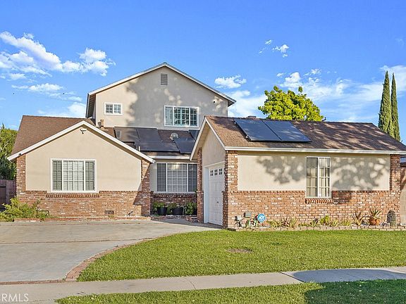 Spacious move-in ready POOL home with 3 bedrooms and 3 bathrooms, 2 Primary Suites- 1 upstairs, 1 down. Extra room just for doing laundry! New Solar, A/C, new stainless steel Gas stove & Dishwasher. This home is an entertainer's DREAM with an almost 8,000 SQ ft lot, 1963 SQ ft of living space and an extra large backyard. TWO patio covers, pool, green grass yard, and beautiful landscaping. This home boasts upgrades throughout including remodeled bathrooms, new paint, A/C, SOLAR, upgraded Main electric panel, energy-efficient windows, and custom wood shutters throughout.