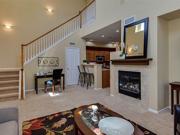 Gorgeous townhouse style home! Immaculate, newer carpet, newer paint, great floorplan that is light and open. Huge master with 5pc bath and lovely barn door. Great kitchen with stainless appliances, dining room, two story family with cozy fireplace and plantation shutters throughout. Two car attached garage. Private patio, walk to grocery, retail and restaurants. Fantastic unit at a great price! Hurry...BEST PRICE IN THE NEIGHBORHOOD!