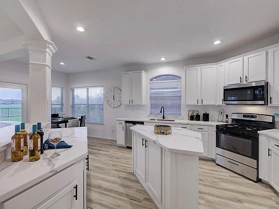 High ceilingsStainless steel appliancesMassive closetStriking wall nichesLarge islandBright open layoutBeautiful entry