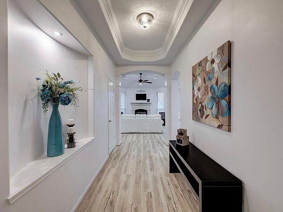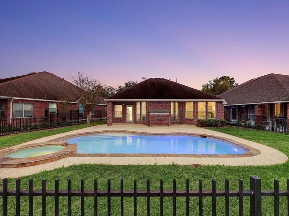 Located on the golf course in a gated, master-planned community, this elegant one-story home is zoned to fantastic Cy-Fair ISD and packed with updates! Enjoy a sparkling pool with color-changing LED lights, perfect for hot Texas days. Inside, find high ceilings, a bright open layout, quartz countertops in kitchen and baths, and stainless steel appliances. The kitchen opens to the family room with a fireplace and features a large island (no cooktop). Updates in the last 2 years include refrigerator, dishwasher, washer, and dryer. The luxurious primary suite features a designer walk-in shower with frameless glass and a massive closet. Additional highlights include a beautiful entry and striking wall niches. Roof and AC only 5 years old. Stone Gate offers a splash pad, rec center, clubhouse, tennis courts, basketball pavilion, and sand volleyball. Washer, dryer, and refrigerator included!