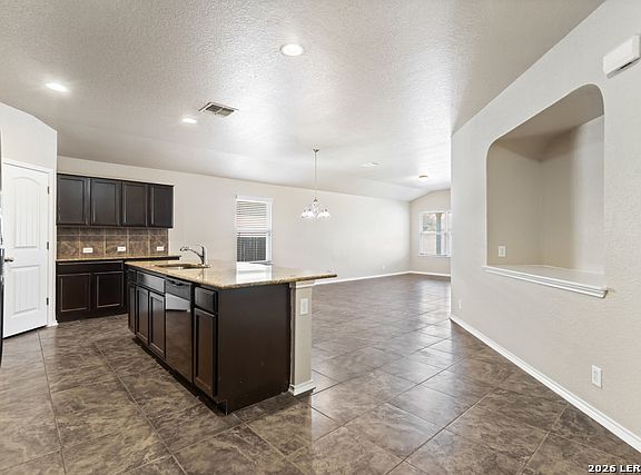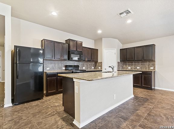 This single-story home offers a bright open floor plan with a comfortable living area that connects to an eat-in kitchen featuring granite countertops and a refrigerator included. The bedrooms are well sized, and a separate laundry room adds convenience. The primary suite includes a walk-in closet and a full bath with a garden tub. The large backyard includes a covered patio and sprinkler system, providing space for outdoor activities and gatherings. The community offers a pool and playground for additional recreation. Conveniently located near major highways, Seaworld, Northwest Vista, UTSA, shopping, dining, and entertainment, this home provides practical living in a well-situated neighborhood.