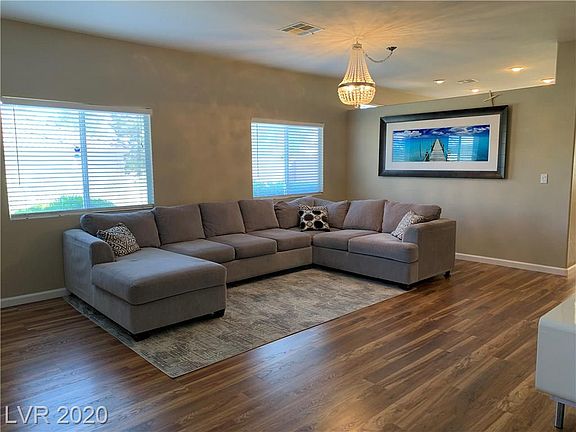 Beautiful Southern Highlands home on a CORNER LOT in a SINGLE STORY gated community. Well taken care of 3 beds plus den, new laminate floors, granite kitchen counter top, stainless steel kitchen appliances, wine fridge, fireplace, beautiful chandeliers, blinds through out and a relaxing backyard. Close to walking trails, dog parks, grocery store, schools, easy access to fwy and just 10 mins to the strip.