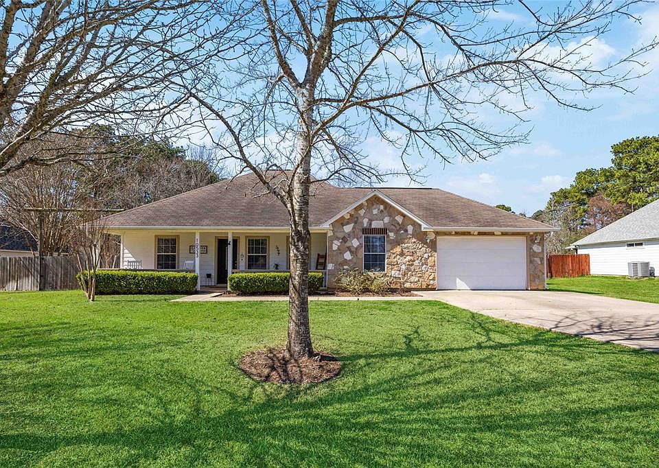 Here's one that won't last long! A super cute 3 bed 2 bath sitting on a one acre lot on a quiet street. This updated country home has 4in base boards, new flooring, a nice bright neutral color palette with ceiling fans throughout. Horse friendly neighborhood (POA permits one horse per acre). Yard is partially fenced with a chicken coop and storage shed. Large new playset in the backyard. New A/C (2023). New Hot water heater. Nice back patio to sit and watch the sunset. This country home is an hour drive from Houston and close enough to shopping, the amenities of Conroe/The Woodlands, but far enough away to enjoy some quiet living.