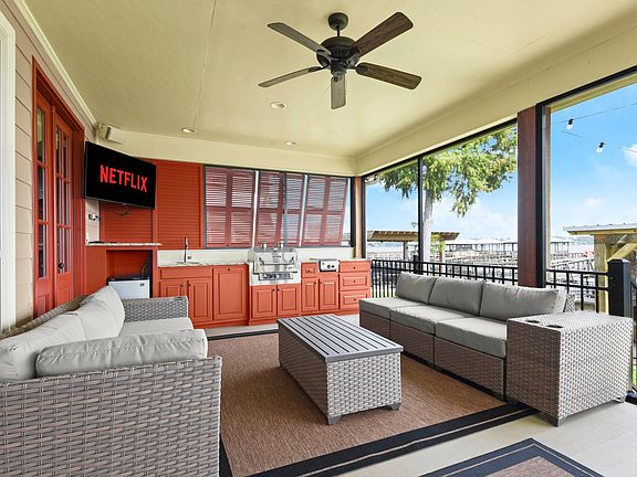 Step outside onto the large patio where you can enjoy cozy furniture under a 20x15 pergola, and outdoor fire place. This is an incredibly peaceful spot to hang out and enjoy the beauty of False River.