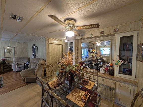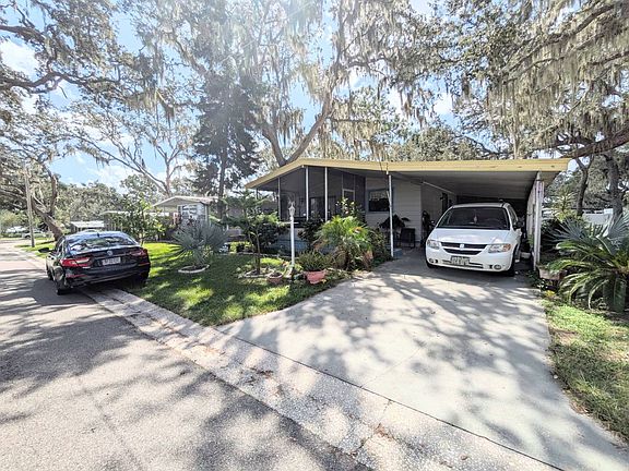 Two Bedroom, 2 Full Bathrooms. Master Bedroom has a Walk In Closet and Full-Size EnSuite Bathroom with Stand-Up Shower. The Guest Bathroom Has a Tub with Shower. The Kitchen Has a Table Height Bar for Seating and Serving. There is a Separate Dining Area with Built in Hutch and a Large Living Room. Screened Florida Room at the Front of the Home. Carport with a Ramp to the Side Entry. Full Size Washer and Dryer Included in the Laundry Room in the Attached Shed. Additional Storage Shelves in Another Screened Area Under the Carport. Perimeter Lot with Large Paver Patio with Detached Shed. The Home is on Leased Land with Monthly Fees of $894. This Fee Includes Water, Sewer, Trash Pick Up, and Use of Pleasant Living Amenities. Pleasant Living is a 55+ Pet Friendly Gated Community. Amenities Include a Screen Enclosed Pool, Clubhouse, Fitness Center, Game Room, Library, Shuffleboard, Putting Green, and More. Conveniently Located off of US HWY 301. All listing information is deemed reliable but not guaranteed and should be independently verified through personal inspection by appropriate professionals. American Mobile Home Sales of Tampa Bay, Inc. cannot guarantee or warrant the accuracy of this information, measurements, or condition of this property. Measurements are approximate. The buyer assumes full responsibility for obtaining all current rates of lot rent, fees, and pass-on costs. Additionally, the buyer is responsible for obtaining all rules, regulations, pet policies, etc., associated with the community, park, or home from the community/park manager. American Mobile Home Sales of Tampa Bay, Inc. is not responsible for quoting of said fees or policies.