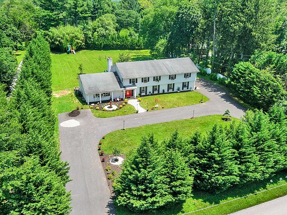 The 1.3 acre flat lot is lined with mature evergreens and has ample parking. Pet friendly.