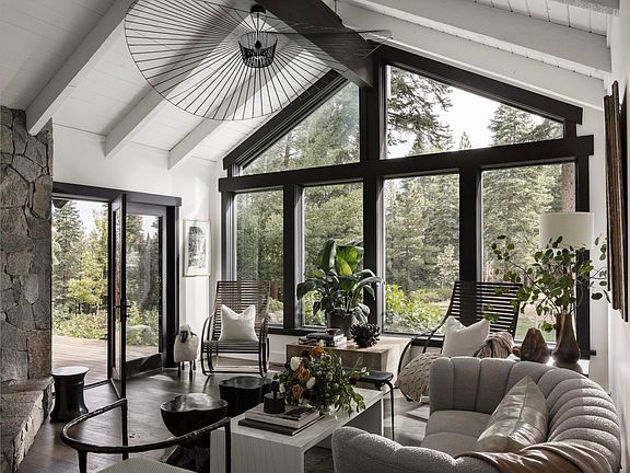 More than just a home, 10534 Actinolite Way is a true sanctuary, a seamless experience where nature, visionary design, and the soul of the mountains intersect. Set on ten acres, this estate is enveloped by Jeffery and Lodgepole Pines, ensuring unmatched privacy while being within easy biking distance to downtown Truckee. An open lawn expands before you, framed by towering pines and a majestic stream and pond, creating the sensation of your own private national park without another home or soul in sight. The indoor and outdoor spaces are equally suited for quiet solitude or lively gatherings, whether it’s an intimate dinner party or a grand celebration. The astounding views are complemented by the softness of the hydrangea bushes and the stillness of the mountains. This property is truly one of a kind, featuring multiple outdoor fire pits, a 'shed' for hosting parties or a few friends, a water feature, over a 1k of private, world class single track and an outdoor hot tub, perfect for unwinding after a day of adventure. There is ample room for horses or additional buildings including an approved house site in Stony Creek. An oversized garage and detached storage shed provide more space for all the recreational gear essential to the Tahoe/Truckee lifestyle. Inside, each room is bathed in natural light and offers breathtaking views, blending effortless comfort and sophisticated design. With 3,600 square feet of refined living space, the property features four bedrooms spread across a main house and a substantial guesthouse. The gourmet kitchen is capable of producing culinary greatness and numerous entertaining areas prevail in the living room, TV room, playroom and multiple outdoor spaces. The house and guest house were completely redone by the current owners in 2018. There are three bedrooms in the main house and one in the guest house which also features two bespoke bunk beds that frequently win the guest favorite award. At 10534 Actinolite Way, feel both a part of Truckee and a world apart, fully immersed in nature yet connected to the vibrant community just moments away. This is more than a residence; it’s a lifestyle and an experience, offering the rare opportunity to live at one with the landscape in a setting that in relaxing and timeless.