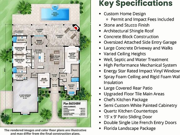 Don't miss out on this beautiful custom- energy efficient home by HOMECRETE HOMES! This 3/4bedroom or Den bedroom, 3 bath, 2.75 car garage home sits on 1 acre, nestled within an eight-lot subdivision encompassed by over 100 acres of picturesque pastures. There is a detached 2 car garage option and there is still time to select all the interior finishes... This home is filled with premier upgrades including decorative ceilings, 8' ft doors, impact windows, spray foam insulation, chef kitchen package, over sized sliders to large covered patio, and more.... Call today to make an appointment to discuss all the details.