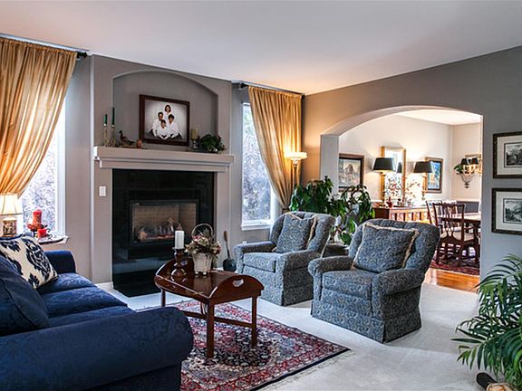 Flowing floorplan bathed in sunlight includes gourmet kitchen with granite open to spacious family room w/fireplace. Private master suite w/ fp & sitting. Spectacular treed lot with expansive deck/patio space. Private pool community!