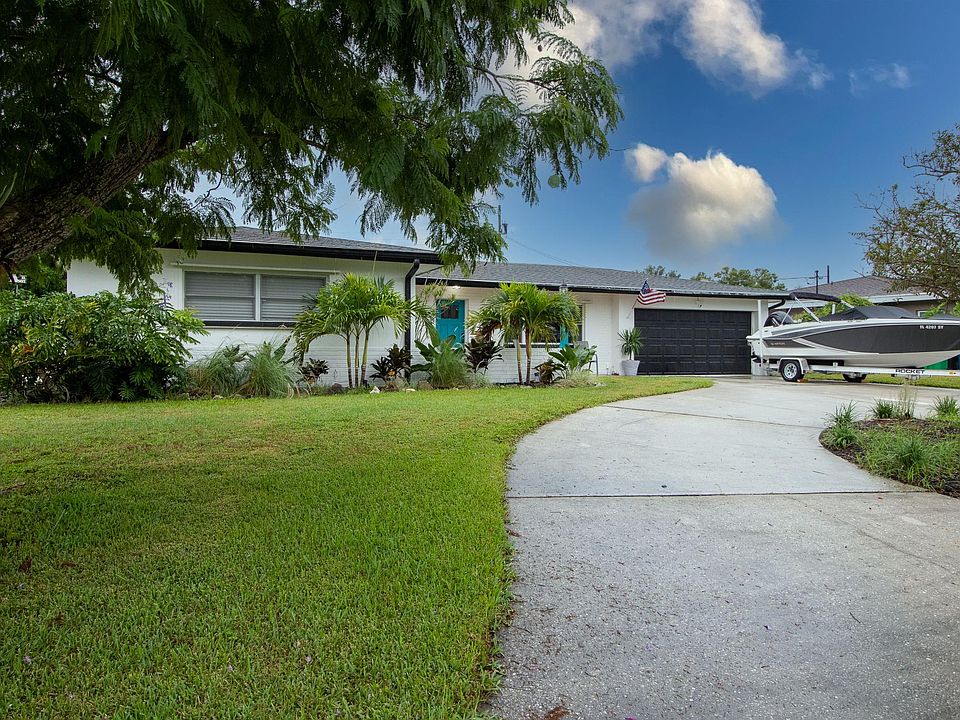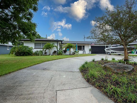 This spacious 3 bedroom 2.5 bath pool home has it all. Relax in your serene backyard oasis complete with a glistening pool, custom built 1/2 pool bath, HUGE fully-fenced backyard, and enjoy fresh fruit from your fruit trees. Old Florida charm meets modern and aesthetically pleasing finishes including granite countertops, barn doors and exposed beams. Terrazzo floors throughout house make for easy maintenance and no carpet. NEW within the past few months: Whole house water softener and filtration system. Gutters throughout and *front gutters newly installed, New Flat Roof, New ceiling fan, New Master Bath Vanity with storage. Pool lights up with an underwater light. Lots of ample parking with a 2 car garage, circular drive way and extra long driveway. Two bonus rooms offer great options for play room/gym/office/etc and lead to the huge backyard through French doors. The yard is fully irrigated front and back. Bring your RV's and water crafts! The awesome neighborhood park is getting a total makeover! Come live in your slice of paradise! All bathrooms beautifully updated in 2020. NEW Flat Roof 2022- NEW Water Softener & Filtration System 2022 - NEW Hot Water Heater 2022- AC 2017. Renter's Insuance Required! One Year Lease! Application fee $45 per adult! Pets ok aggressive breed restriction, refundable pet deposit! Pool Service Included in Rent! $3600 monthly $3600 deposit Tenant is responsible for water sewer trash electric and lawn care. Pool service is included in the rent. Renters insurance required! Pets allowed aggressive breed restricted refundable pet deposit.