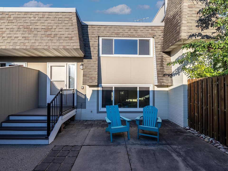Well-maintained three-bedroom townhouse in spectacular area near Minnesota River, Nine Mile Creek, and Oak Grove School & Park. New trex deck entry and fenced-in patio area greets you. Inside, enjoy a bright, open concept floor plan with two story living room and superb natural light throughout. Main level features eat-in kitchen with newer appliances, no maintenance flooring, and adjacent formal dining room. Spacious primary bedroom suite with private deck, plus second bedroom and full hallway bath. Finished walkout lower level with huge living room, wet bar, guest bedroom with 3/4 bath, and den/office with slider to back yard. Detached two car garage with automatic garage door opener. A great location and unit.