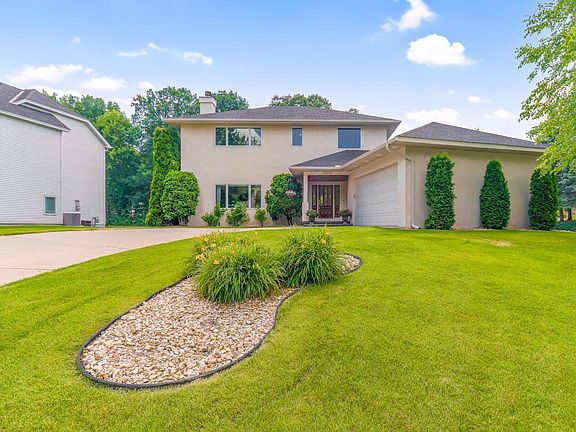 Beautifully Maintained Custom-Built Two-Story in Champlin. This 4-bedroom, 4-bathroom home showcases $219,000 in high-quality upgrades and a spacious garage. Recent updates include a new roof, Pella windows, stucco siding, and fresh exterior paint for lasting peace of mind. Inside, the gourmet kitchen features granite countertops, stainless steel appliances, and opens to a bright great room with a cozy fireplace. A remodeled main bathroom and generous primary suite provide comfort and style. The thoughtful layout includes three bedrooms on the upper level and main-level laundry for added convenience. The finished basement is designed for entertaining, complete with a custom bar, gas fireplace, and pool table. Enjoy efficient, worry-free living with a new furnace and A/C (2023). Situated on a desirable corner lot with backyard trail access and a nearby school bus stop, this home is nestled in a quiet neighborhood close to the 4,500-acre Three Rivers Park District. Truly move-in ready—schedule your showing today!