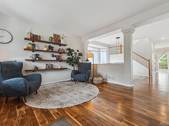 Welcome to this impeccably maintained, tastefully updated show-home. The spacious, chef-friendly kitchen is beautifully appointed with gleaming quartz counters, bright white cabinetry, stainless appliances, tile backsplash, modern hardware and a center island. The fabulous family room features a custom fireplace surround with extensive shelving and gorgeous trim. The spacious dining room can accommodate any sized table and features a beautiful designer chandelier! The adjacent living room invites you to relax and enjoy the serenity of this sun-drenched home. Upstairs, the serene primary suite offers a custom, designer, walk-in closet and an upgraded en-suite bath with dual vanities. The bedroom boasts, a dual sided fireplace, perfect for an office or cozy relaxing evenings with your significant other. Across the hall are two good-sized secondary bedrooms and a second full bathroom. To one side of the finished walkout basement is a nice sized bedroom with its own, high end, en-suite bathroom. In the other direction there is a fabulous bar area in a delightful lounge setting. Completing the basement is a large games room / media room that features a custom craft area / office space. Outside you will find an upper deck and a lower patio - a wonderful setting to enjoy beautiful sun rises and cool Colorado evenings. This property sits in a perfect location, just a short walk from Southridge Recreation Center, the newest of the four incredible rec centers which provide the foundation for the active Highlands Ranch experience - with multiple pools, tennis & pickleball courts & many workout facilities. The home is situated in a quiet location not far from parks & trails (including Daniels Park). With easy access to C-470, Park Meadows and many great restaurants, this truly is an amazing, one of a kind property.