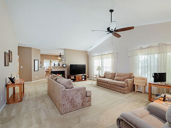 EXPERIENCE THE BEST in low-maintenance living in this wonderful and meticulously maintained 2 BR / 2 Full bath all-brick condo! RANCH CONDO starts with a spacious and open great room w/ soaring ceilings - Cozy double sided fireplace is centrally located - Kitchen with over-sized breakfast bar opens perfectly to dining area or flex space with options galore - Wonderful sunroom just off kitchen has splendid views to the backyard and open concrete patio - The Primary Bedroom with vaulted ceilings has a walk-in closet, easy entry shower, and double sink vanity - Secondary Bedroom is perfect for guests and is across the hall from the 2nd Bath - Don't forget about the convenient office and storage space! - Custom wire shelving in the closets and ceiling fans in most rooms - This condo is nestled in the Links at Eagle Creek and minutes to Eagle Creek Park, interstate access, and things Brownsburg - All appliances included - Welcome Home!