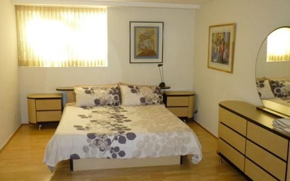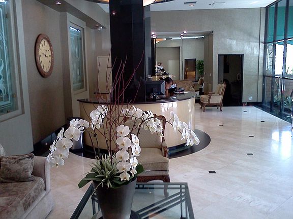 FURNISHED 2BD/2BA CORRIDOR CONDO. Bright modern unit faces north away from traffic. Furnished living room with flat screen HDTV. Kitchen with all appliances included. Washer and dryer in unit. Master bedroom with a King bedroom set, walk-in closet and vanity area. Master bathroom with Jacuzzi tub and shower. Amenities include: gym, sun deck, heated Olympic pool, Jacuzzi, sauna, bbqs, 3 tennis courts, 24 hr controlled access building with concierge desk. 2 floating parking spaces and plenty of guest parking in subterranean garage.