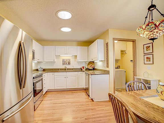Simplified townhouse one-level living overlooking a pond and wetlands. Impeccably maintained and updated kitchen with quartz, stainless steel appliances and white cabinetry. Bright, natural light throughout this end unit and amazing storage space throughout! Enjoy morning coffee in the sunroom watching the wildlife right outside your door. Cozy up by the fireplace in the vaulted living room on the main floor. Entertain in the formal or informal dining area. Main floor laundry room adds to the ease of daily living on the main floor. The lower level includes a large recreational room with large lookout windows, a ventilated large workshop/storage, mechanical room/storage, large bedroom and 3/4 bath. Easy access to conveniences including shopping, restaurants, parks and highways. Beat the up north crowd on Fridays with a quick hop onto Hwy 169. 2020-05-08