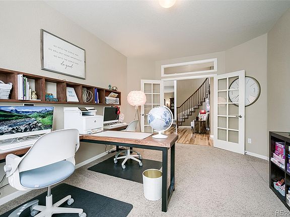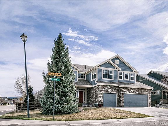 Welcome home to this gorgeous 4 bed, 5 bath home located in the Chatfield Farms West neighborhood. The foyer greets you with hardwood floors and a grand rounded staircase. The open, main level floor plan leads you seamlessly from the living area into the bright and updated eat-in kitchen. With quartz countertops, a 5-burner gas cooktop, double ovens, and an in-island microwave this kitchen is designed for ease of function as a great space to entertain. Home office with glass French doors gives the perfect amount of quiet productive space. Separate laundry/utility room right off the 3-car garage. Upstairs hosts a large master suite complete with an updated 5-piece bath and walk-in closet. The loft at the top of the staircase gives additional bonus space to make your own. Spacious bedrooms complete the second story, 2 of which share a Jack-and-Jill bathroom and the third being an en suite guest bedroom. The finished basement holds plenty of flex space for activities and games. There is a large storage room, which holds the new furnace and water heater (2020). The theater room makes this the ultimate basement and even includes projector and screen. Walk outside to a backyard that has it all! The great patio space allows you to grill and enjoy the sunshine while still giving yard space to take advantage of. Enjoy the many activities Colorado has to offer as this home is situated minutes from Chatfield State Park, Roxborough Park, and Waterton Canyon. Solar panels are owned!