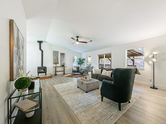 Located in desirable Sierra Meadows, this well-maintained home offers a two-car garage, generous parking, and a move-in-ready interior with numerous updates including fresh paint and new flooring and fixtures throughout. The layout includes a covered entry and mudroom, spacious living and dining area with wood-burning stove, laundry room, two full baths, and three bedrooms, including a primary ensuite with walk-in closet. The kitchen features newer stainless-steel appliances. Set on a generous-sized lot, the property offers a fully fenced backyard with a covered deck and two storage sheds. Notable improvements include a newer roof, exterior paint, and driveway sealing. Parking is ample for boat and/or RV, snowmobiles and all the Tahoe toys. Taller than average garage door is nearly 9 feet to accommodate bigger trucks and vehicles. Just 1.5 miles from Downtown Truckee and a few blocks from the Sierra Meadows pool, playground, and tennis court, this home combines convenience with lifestyle. In summer, ride bikes to the farmers market or Wednesday night concerts, or stroll the Legacy Trail along the Truckee River. In winter, enjoy central access to all major ski resorts within minutes.