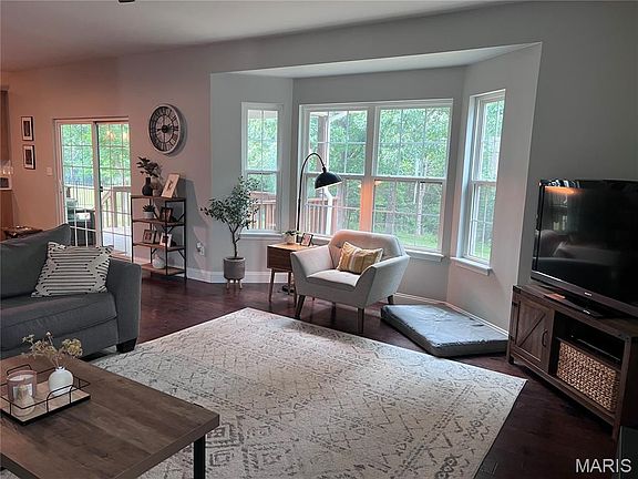Move-in ready and loaded with sooo much living space! This stunning and beautifully cared for 2-Story home in Festus R6 Schools. 4 Bed 3.5 Bath over 3300 finished sq ft of living space. Step into the main level with beautiful wide plank wood floors. Office area or Formal dining area, You choose! Add your Design for family Office and homework area. "Spacious" Great room with Gas Fireplace and Bay window. Kitchen boast tons of cabinet and Granite counter top space for all your everyday cooking and entertaining. Kitchen Center island with pendant lights also includes area for bar stools plus extra counter space. Breakfast/dining area with a door leading to spacious covered deck for outdoor relaxation or entertaining. Sit and enjoy over looking the park like view with stairs to yard & private fire pit. Back Yard backs to common ground with wet weather creek. 2nd level features 4 spacious bed rooms. The primary suite offers very spacious bed room and Beautifully up dated Primary bath with tiled shower and separate tub, spacious walk in closet. 2nd,3rd & 4th bed rms offer so much space for all the kids needs. There's more! The finished lower level is ready for family nights or additional office or game room PLUS additional storage room. The lower level walks out to back yard and tuck under shed storage. 3rd car garage has 6'extention to allow for work bench or Boat storage.