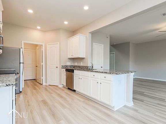This home includes luxury vinyl plank flooring, granite countertops, and stainless steel appliances. As you navigate throughout the rest of the home, you'll find a breakfast bar in the kitchen, an open-concept floor plan, and a spacious walk-in closet in the primary suite.
