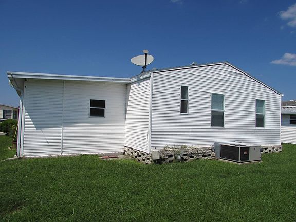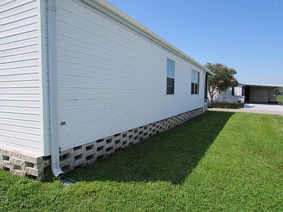 Lovely, durable laminate flooring in living room and both bedrooms and hall with ceramic tile in kitchen, dining room and both bathrooms. There is a front facing Florida room with ceramic tile flooring and vinyl windows with full screening. The Florida room is also air conditioned. There are two entrances both under protection of the carport. The main entrance enters into the dining room while the second entrance enters into the hallway/laundry room. At the end of the long driveway is the oversized shed with lots of room for storage. The dining room is large enough for a full table and chairs as well as other furniture. The kitchen has a double stainless steel sink with window above. There is a side by side refrigerator with water and ice in door, a smooth top range and a microwave all included. Washer and dryer is also included. Beyond the dining room is a hallway leading to the guest bathroom which has a tub/shower. Across from the guest bath is the guest bedroom. At the end of the hallway is the spacious master bedroom with plenty of room for a king sized bed and other furniture. There is also a huge wall to wall closet for lots of storage. The attached master bath is very spacious with a step in shower and counter top space including a make up vanity area. The 2025 rent is 833. Come see this gem in Country Place Village, a 55+ 5 star resort community in Trinity Florida with many amenities including fishing in our beautiful lakes, heated swimming pool and spa, tennis, pickleball, shuffleboard, bocce, billiards, exercise room with all new equipment, and a large clubhouse for activities such as shows, dinners, dancing, bingo, quilting, yoga and crafts. Only minutes from shopping and dining, airports, golf and beaches.