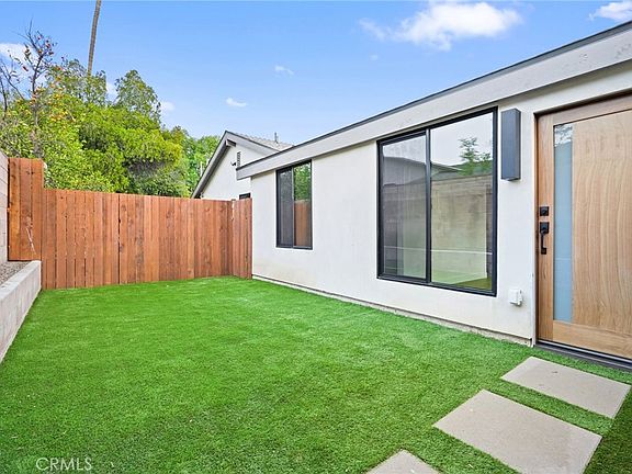 Every window in the home is a sleek black-on-black design, including a massive 190-inch multi-slider door leading to the backyard. The exterior features a new fence and a low-maintenance landscape with artificial turf in both the front and backyard. A tankless water heater has been installed , and brand-new interior doors add a sophisticated touch throughout.