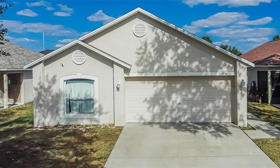 This 3-bedroom, 2-bathroom home is located in South Fork with community amenities including a Pool, tennis court, playground and recreation building with a meeting room. The home features an open floorplan with cathedral ceilings and built-in plant shelves. The side entry opens into a combined family room and dining room combo. The owner's suite includes a walk-in closet and an attached bathroom with a separate vanity area. The two secondary bedrooms are at the front of the house with a guest bathroom between them. The kitchen contains a pantry and breakfast nook with hurricane rated sliding glass doors that lead to your screened patio. Enjoy the Florida weather year-round on your screened patio that overlooks your backyard. The property includes a 2-car garage with garage door opener and washer/dryer hookups. No CDD in this phase of South Fork. A/C Replaced in 2017. roof replaced in 2023 and water heater replaced in 2024.