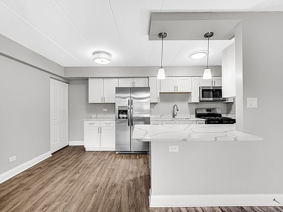 WOW! Take a look at this recently renovated one bedroom first floor condo with in unit laundry! This condo was completely renovated in 2022. As you walk in you will see the beautiful open floor plan with all new flooring and fresh paint. Like an open concept? Take a look at the stunning chefs kitchen with all newer white cabinets and quartz counter tops. Plenty of closet space. Newer stainless steel appliances. Very large bedroom has walk in closet and new ceiling fan. New Air conditioner. Beautiful large balcony overlooking the living room. Low HOA includes all of this: water, gas, and heat. Convenient location near mall, shopping, schools, and parks. Yes it can be rented. Investors welcome.