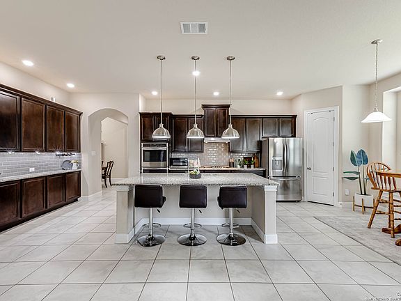 100% financing available! Welcome to your dream home in one of Helotes' best-kept secrets, a small, gated community with fewer than 100 homes, offering a sense of privacy and connection that's hard to find. This stunning 5-bedroom, 4-bath home is thoughtfully designed for both everyday comfort and effortless entertaining. Nearly every room is conveniently located on the main floor, including four spacious bedrooms, while a private upstairs retreat features an additional bedroom, full bath, and a large game/media room perfect for movie nights, hobbies, or hosting guests. The open-concept layout seamlessly connects the kitchen, dining, and living areas, creating a natural flow ideal for family time or lively gatherings. You'll love the oversized eat-in island, double ovens, gas cooktop, and coffee bar. This kitchen was made for connection and convenience. Step outside to your expansive backyard and enjoy the large covered patio ideal for summer cookouts, evening relaxation, or watching the kids and pets play. The oversized lot provides room to roam and endless potential for creating your outdoor oasis. Located just minutes from shopping, dining, and entertainment, this home offers the perfect balance of tranquility and accessibility. Don't miss the chance to live in a neighborhood where neighbors know each other, and every home feels like a retreat. Enjoy endless hot water with a Tankless hot water heater!