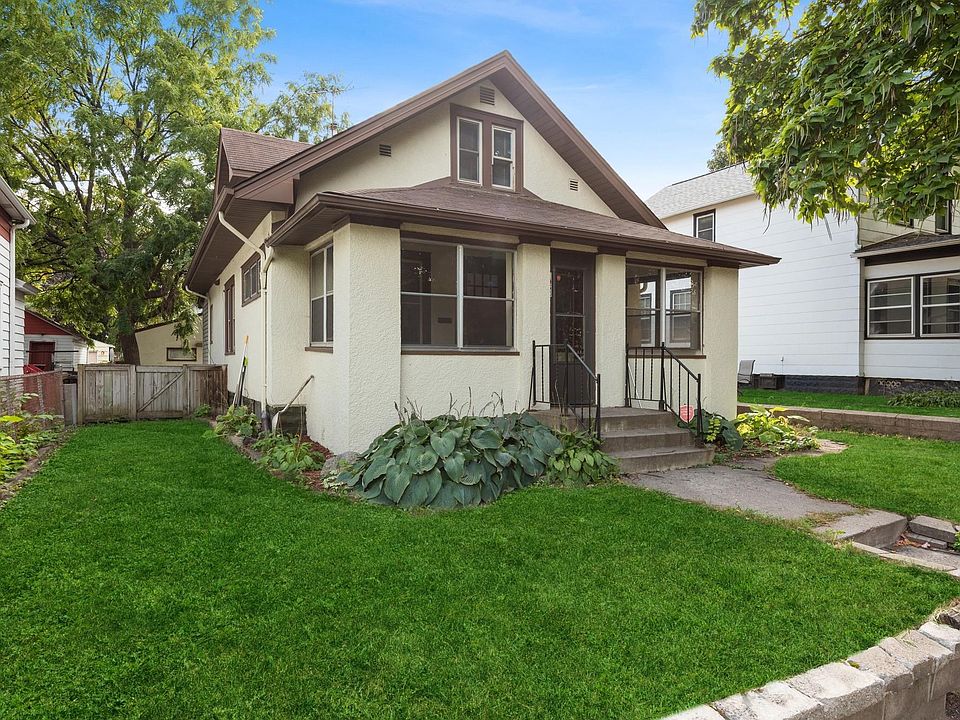 This cute home is easy to fall in love with...beautiful woodwork and charm, hardwood floors, piano windows, built in buffet, fresh paint throughout interior and a huge front porch with new windows 2022. Don't forget the great layout, the HUGE eat-in kitchen with plenty of counter and cabinet space, the fenced in backyard, or the large two car garage. Lower level is waiting for your finishing touches. They don't make them like this anymore. Come check it out!