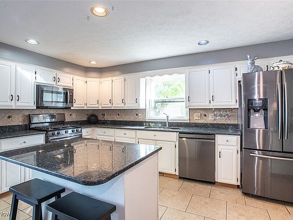 This gorgeous colonial in Medina’s desirable Forest Meadows neighborhood offers the perfect blend of charm, space, and modern updates in an unbeatable location. The heart of the home is the spacious kitchen, featuring white cabinets, granite countertops, and a large center island—a perfect space for cooking, entertaining, or gathering with family. Hardwood floors flow through the dining and living rooms, where a beautiful fireplace adds warmth and character. The first floor also includes a versatile fifth bedroom, ideal for guests or a home office, and the convenience of first-floor laundry makes daily living a breeze. Upstairs, you’ll find new carpeting and generous walk-in closets in each bedroom, including a primary suite with two walk-ins, a jetted soaking tub, and a cozy faux fireplace/mantle. The guest bath has been refreshed with new flooring for a bright, updated feel. The finished basement offers a spacious area perfect for a large rec room, home theater or game space. Outdoor living is just as inviting, with a very large deck overlooking the completely fenced backyard with a newer six-foot chain-link fence—perfect for entertaining, pets, or play. A cozy front porch offers the perfect spot to relax and enjoy the neighborhood charm. Additional highlights include newer garage doors, built-in storage in the garage, and a newer washer and dryer. This Forest Meadows beauty truly combines comfort, character, and convenience in one exceptional home.