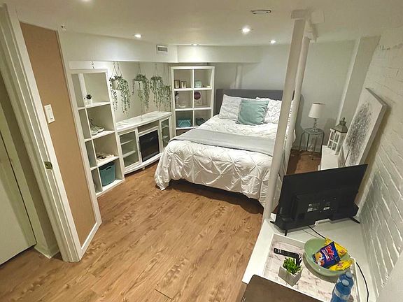 AMAZING location at Bloor and Dufferin. Newly renovated junior 1 bedroom basement apartment for rent. Furnished or unfurnished. Completely separate private entrance at front of house. Ideal for 1 person/student or a couple. New fridge, built-in induction cook-top and microwave. Central Air conditioning. In-suite washer/spin dryer. Less than 1 minute walk to Bloor/Dufferin subway station or Dufferin Bus. 2 minute walk to stores and restaurants. 5 minute walk to Dufferin Mall. For quiet non-smoker, and no pets. Street parking only and when available. Only $40 for utilities and includes wifi. Employment and landlord reference and credit score. Some lower ceilings makes this ideal for people under 6 feet tall.