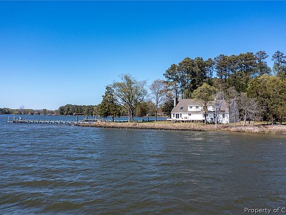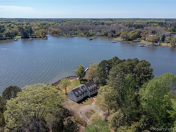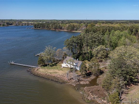 If you are searching for a peaceful, secluded getaway on the Mobjack Bay, look no further! Situated on the North River, this spacious, renovated brick home has it all. Gorgeous panoramic sunsets, mature shade trees, deep water, updated pier and boatlift (2019), protective riprap (2015), wide waterside deck. Inside you'll be delighted by open floor plan, all the light from waterside vaulted living spaces with skylight, and clean, simple lines. Large en suite primary bedroom with slider out to balcony, beautiful bath with water views, cedar lined walk in closet with an additional flex room along with another flexible bonus room over garage for storage, crafting or exercise space. Two guest bedrooms along the open hall and guest bath with more water views. Den/office/dining with woodstove and built in cabinets. Walk in pantry and laundry/mud room.
