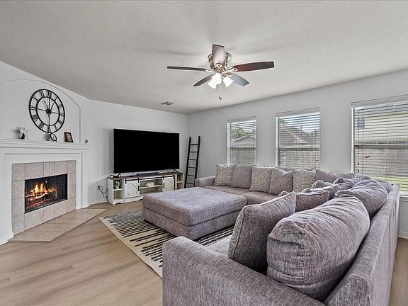 Sitting on a quiet cul-de-sac lot this gorgeous 3 bedroom, 2.5 bathroom home has been freshly painted and features luxury vinyl plank flooring throughout the ENTIRE HOME! There is a large formal dining room just off the two story entry with amazing natural lighting. Spacious yet cozy living area with gas fireplace that leads into a large kitchen with granite countertops, gas range, informal dining space and tons of cabinets for storage. Both the primary suite and secondary suites are located on the 2nd floor with additional game room/second living area. You're going to love this large backyard with covered patio! HVAC is 2020, low HOA fees and very low 2.4% tax rate. No flood insurance required, Zone X! Close to good schools, restaurants, shopping and only minutes from I-45.