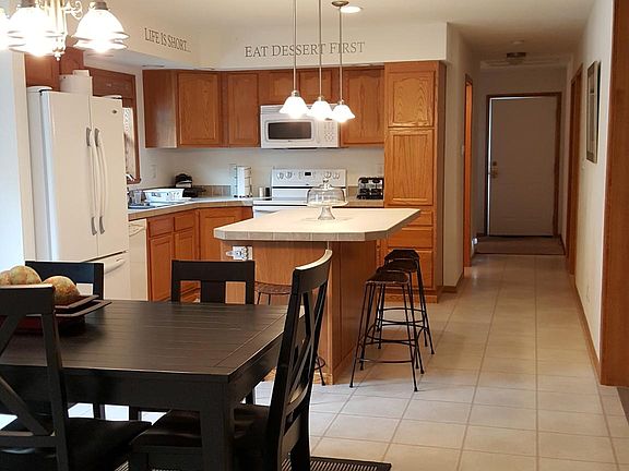 Large home overlooking the Apple River. The home comes fully furnished. There are 2 kitchens fully stocked, laundry, 2 living/family rooms, 2 on-suite bedrooms, plus 2 additional bedrooms. All bedrooms are furnished with queen beds. Detached garage with parking for 1 car, snow blower included to do your own snow plowing. Rent includes directv, internet , garbage, $350 utility credit/ month and 2 septic pumping/month . Not included is $500 nonrefundable cleaning fee, any extra septic pumpings or utilities beyond $350 credit/month. Oct 30-April 30 month to month lease, no extension dates available beyond April 30, 2022 Absolutely no pets allowed. No smoking allowed in any buildings.