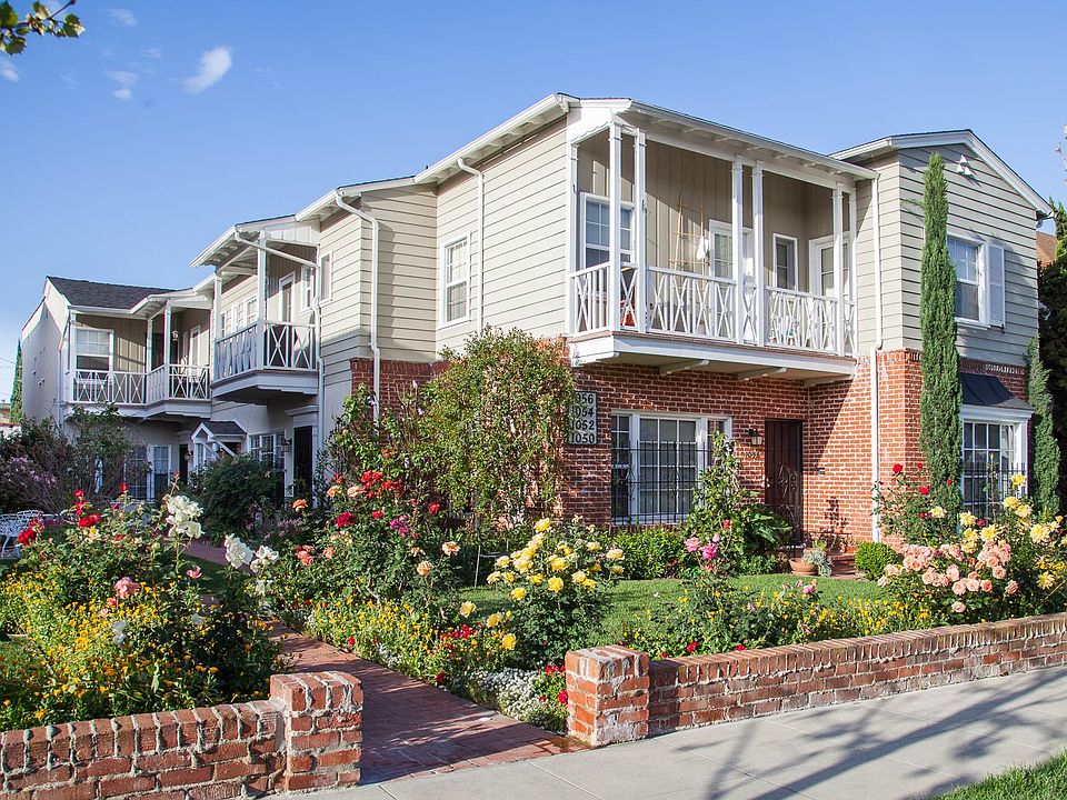 This "Melrose Place" style courtyard complex has a total of eight units in two separate buildings. Photos shown are representative of the available units. In addition to the listed unit there is a front unit available for a slightly higher price. That unit has a view of the Hollywood sign and a front yard. Unit 1054 has just been fully restored with refinished hardwood floors, new designer paint and antique fixtures. Miracle Mile is well known for its vintage luxury townhomes and 1054 Masselin Ave. is a prime example. Features include: * Cape Cod design by prominent LA architect * Building laid out to maximize number of windows, light, cross breezes and views * Faux fireplace * Cast-in-place crown moldings * Separate dining room * Decorative tile in kitchen and bath * Staircase with old-fashioned bannister * Fantastic skylight at top of the stairs * Vanity area * Master bath with oversized shower and separate tub * Balcony * Walk-in closets and a second entrance, which is close to the garage Townhouse style means two-story. There is no tenant above or below you to complain about noise. This is a big deal in a building with hardwood floors. There is garage parking for one car and storage on a shelf above the front of the car. The garage door is power operated. Comes with new Kitchen Aid stove, refrigerator and washer and dryer, yes in the unit! Brand new A/C units in the bedrooms. Perhaps best of all the plumbing is new copper and drain lines were replaced all the way to the street. New electrical and roof. Very rare to find a vintage building with so many recent upgrades which make the living experience much more pleasant. The street is horseshoe-shaped and wide, very quiet and looks like a Hollywood movie set. There is a community BBQ in the back of the building. The award-winning garden contains 60 rose bushes, some of which were planted more than 50 years ago. Close to The Grove, LACMA, Petersen and El Rey Theater. All units have beautiful garden views. MAGICAL AND ENCHANTING -- MUST SEE! Very sorry no large dogs allowed. We can accept a cat. Tenant pays gas, electric and sanitation