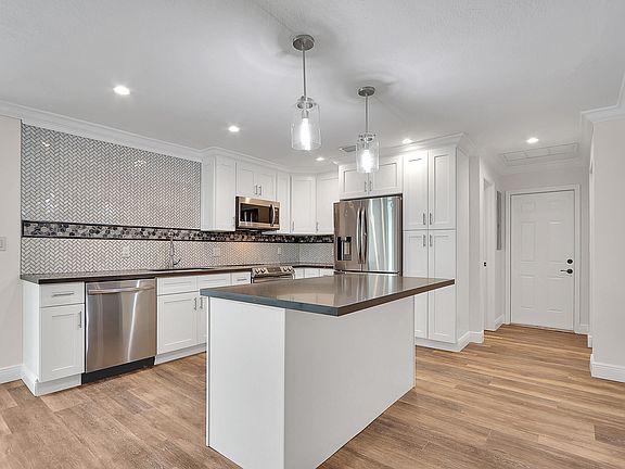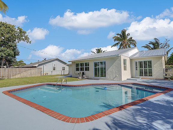 Explore the charm of this fully renovated 3-bedroom, 2-bathroom home, designed for contemporary comfort! Inside, you'll find luxury vinyl flooring, stainless steel appliances, a brand-new kitchen, and beautifully remodeled bathrooms. Other recent improvements include a new roof installed in June 2023 and complete impact windows and doors. The property includes a deep one-car garage, offering ample space for storage or a workshop, without the constraints of HOA fees. The fenced backyard is an inviting retreat, complete with a pool and hot tub--ideal for relaxation and entertainment. Located conveniently close to shopping, dining, and beaches, this home perfectly blends comfort with accessibility.