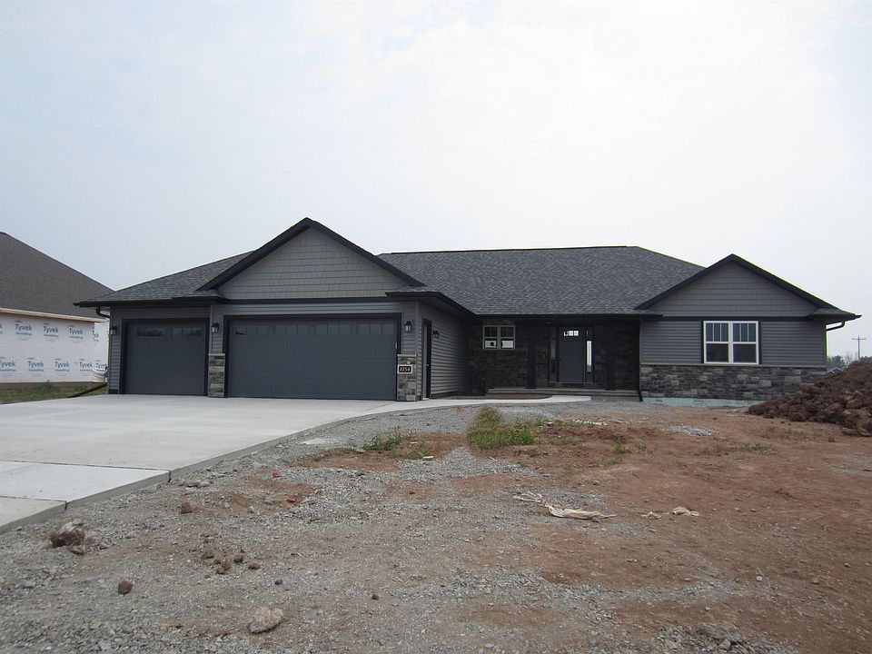Quality built, split BD open concept design. LV flooring, cathedral ceilings, supreme custom maple cabinetry, walk in pantry, kitchen island work counter. Gaslog FP but focal point upon entry is the stunning LR window! PB with walk in closet, tray ceiling, full bath w/tile step in shower, dbl vanity. Half bath, 1st flr laundry w/tub & access to backyard! Dining area w/patio to concrete patio. 2nd BD w/walk in closet. Abundance of linens & closet storage. LL w/egress window, rough ins for future bath. Oversized garage w/trench drain, stairs to basement, garage door openers & keyless entry pad. Front covered porch w/stone accent and so much more! Taxes TBD No offers to have acceptance date of a Saturday, Sunday or holiday