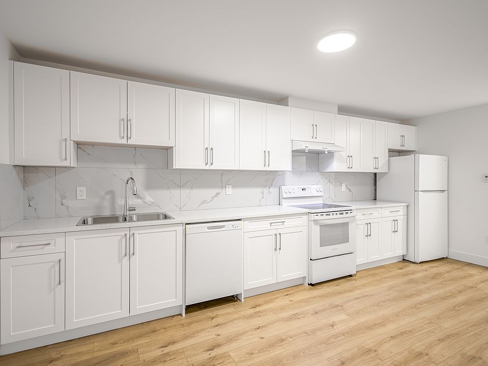 Modern Kitchen: New white cabinets, quartz countertops, and full-sized