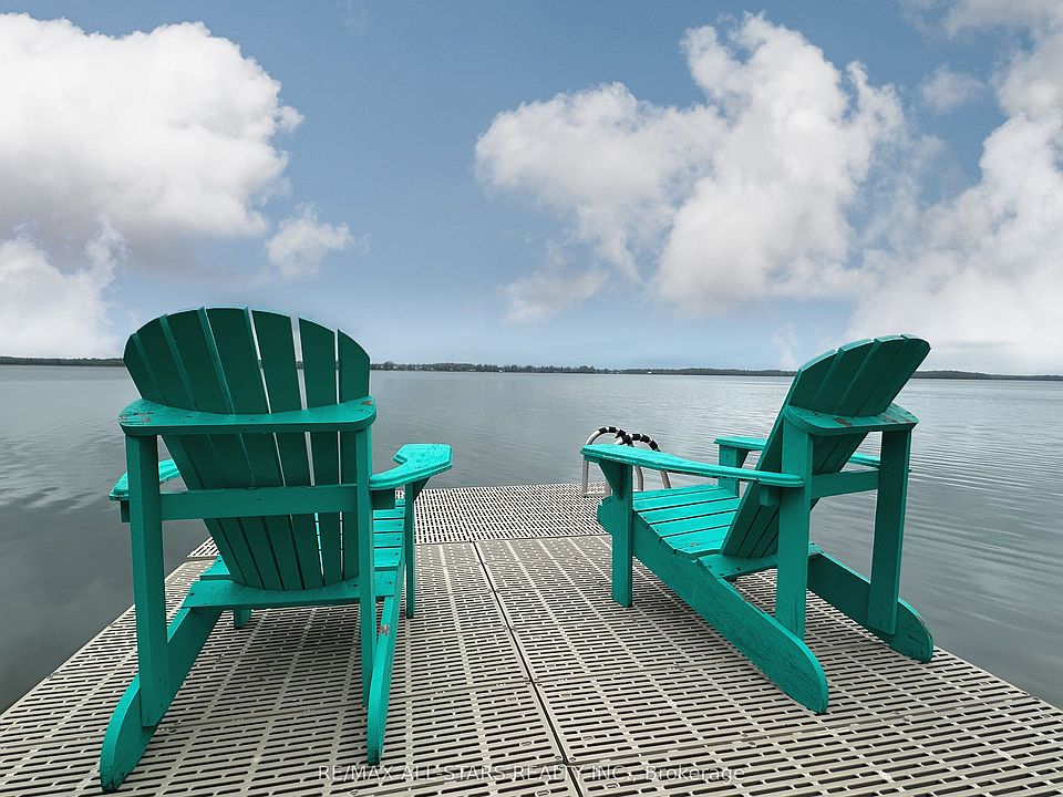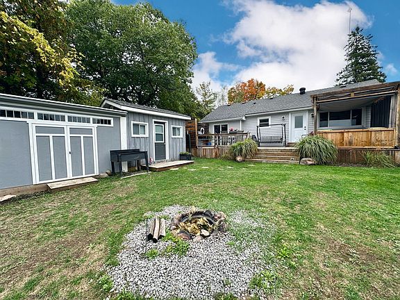 WEEDFREE SWIMMING . This Lake Dalrymple waterfront property is perfectly positioned to capture beautiful sunsets. Extensively renovated inside and out, it offers a low-maintenance lifestyle so you can spend more time enjoying the lake. Relax on the amazing 8 x 15 deck at the base of the dock on warm summer nights, or entertain family and friends on the 12 x 35 deck featuring a gazebo. Walkouts from both the living room and kitchen. A heated, lakeside bunkie provides a 3rd bedroom, offering privacy for guests. Garden shed keeps all your outdoor equipment neatly stored and a small storage shed at the front entrance adds extra convenience. A heated workshop offers space for hobbies or projects. Upgrades include updated wiring with generator rough-in, plumbing, flooring, shingles (2018), patio door (2020), well pump (2018). Property is heated with modern, efficient baseboard heaters along with a propane stove & fireplace. Just 75 minutes from Toronto and 20 minutes from Casino Rama.