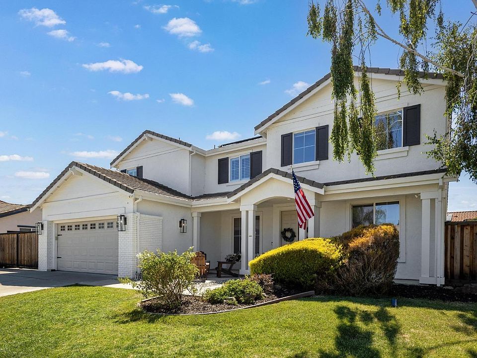 Possible assumable VA loan at 2.25% for eligible VA buyers! This stunning home will impress from the second you walk in the door with grand tall ceilings and a unique speakeasy style bar right off the entry that will be sure to impress.The kitchen has been beautifully remodeled, featuring ample storage, a large island that can seat 7, and a designer vent hood. The open layout connects seamlessly to the living area with vaulted ceilings and automatic opening woven wood window coverings. Convenience is key with a spacious downstairs primary suite that boasts a huge bathroom with a walk-in shower equipped with dual shower heads. The large closet includes custom built-in storage, providing plenty of room for all your belongings. Fitness enthusiasts will appreciate the home gym that is ready to go, allowing you to stay active without leaving the comfort of your own home- or this space could be used for many other things. Head upstairs to the second floor, where you'll find three kids bedrooms and a large loft area. The backyard is a true oasis, ideal for entertaining. The recently remodeled heated pool features an added Baja shelf and designer tile. Parking will never be an issue, as this home offers ample parking space, including RV parking. So many upgrades to list, don't miss it!