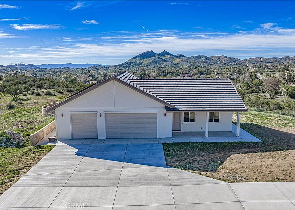 Never lived in single-story new construction offering exceptional flexibility with true next-gen living and thoughtfully designed accessibility features. This accessible home includes a fully private and separate living space with its own entrance, one bedroom with closet, full accessible bathroom, living area, and kitchenette with farmhouse sink—ideal for multi-generational living, in-law accommodations, caretaker quarters, or extended guest use. The entire residence is designed for step-free living with no interior steps, widened doorways, roll-friendly flooring, and barrier-free layouts throughout, making it a mobility-friendly and wheelchair-accessible house. All bathrooms feature raised and roll-under vanities and sinks, while the primary suite offers a walk-in closet and an accessible bathroom with a roll-in shower and grab bars. The light and bright interior features 9-foot ceilings, solar tube daylighting, and an efficient mini-split HVAC system. The main kitchen is designed for both function and style with tall counters, center island, farmhouse sink, Samsung dual convection oven, and quality finishes. This all electric home is complemented by Milgard fiberglass windows, owned solar with Tesla battery system, and a drywalled three-car garage housing the water pressure pump and filtration systems from the elements. Set on a private 4.8 acre lot, this single-story accessible luxury home enjoys stunning views of Vasquez Rocks and Saddleback Mountain from the covered front patio and paved courtyard, offering a rare opportunity to own a mobility-friendly, energy-efficient, multi-generational home with privacy, space, and scenic surroundings.