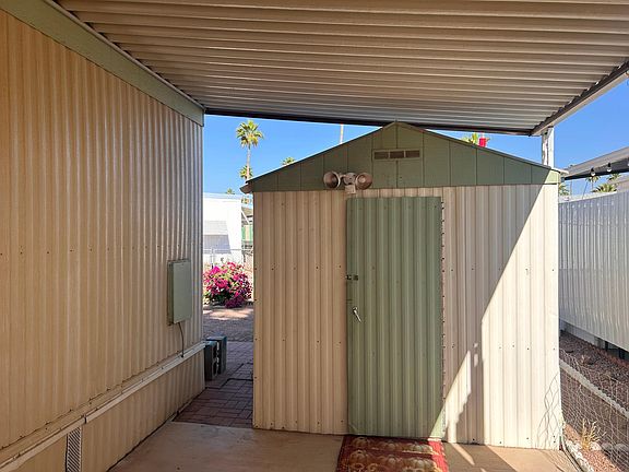 Have your own little place with no shared walls like the small apartments in the area. Two good sized sheds on both sides to store extra belongings. This is a 55+ community that has a nice clubhouse, swimming pool, hot tub, pool tables, and lots of other nice little amenities. Close to restaurants, shopping, and freeways to get through the valley. Self tour is available. Flexible lease terms. Long or short term