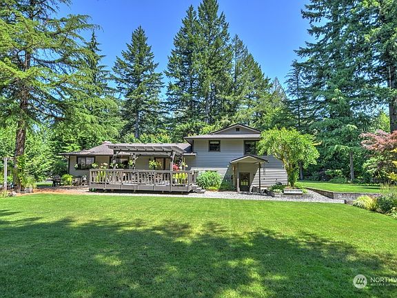 Exceptionally well maintained home in a private setting you'll absolutely love. Conveniently located in Tumwater, the 2,454 SF tri-level sits on nearly 5 acres & boasts a wonderful combination of manicured grounds, gardens & lightly forested land. The home features quality woodwork, skylights & hardwood flrs, plus a gourmet kitchen w/ double oven & quartzite counters. Updated bathrooms. 4 bdrms, including the large primary w/ lots of room for dressers & furniture. 2 car attached garage, plus a spacious workshop w/ garage bay, & a carport for additional covered parking. Deck overlooking the backyard & forest, fenced garden w/ raised beds, & an attractive gazebo w/ firepit that is perfect for gatherings. New roof, newer heat pump & much more.