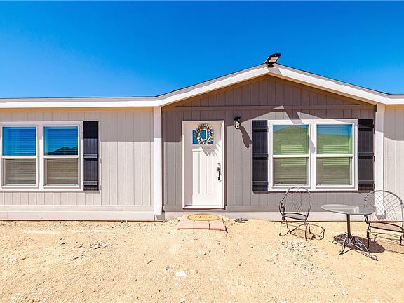 Experience breathtaking mountain views from this spacious off-grid home, set on 4.55 acres of tranquil and private land, conveniently located just minutes from town and essential amenities. The 1,680 sq ft manufactured home, built in 2023, features 4 bedrooms and 2 bathrooms and is in excellent condition. The seller has made several upgrades, including a full-length covered deck/patio and three mini-split heating and cooling units in the dining room, bedroom, and living room. Inside, you'll find stylish fixtures and neutral decor throughout. The well-appointed kitchen and master bedroom, which includes a large walk-in closet, enhance the home's appeal. The other three bedrooms are situated on the opposite end, offering a split floor plan for added privacy. Outside, enjoy a back covered patio a perfect spot for sipping lemonade while taking in the stunning Arizona skies. The property comes equipped with an owned 6,000 kWh solar system with batteries, plus a second solar system that powers the tool shed and chicken run shed. It features a 5,000-gallon water tank, a trailer with a water tank and pump, and a generator with a maximum output of 13,000 watts, providing 8,000 watts of steady power during outages. Additionally, there are three sheds on the property: one with a metal barbed wire chicken run, one functioning as the battery shed, and the third serving as a tool shed. The first solar system consists of 24 panels rated at 250 watts each, totaling 6,000 kWh, and includes a SolArk 12,000 kWh capacity charge controller with four internal DC to AC inverters, as well as eight LifePower EG4 48-volt, 100 amp-hour batteries with a 48-volt bus bar connection. The second solar system includes 10 panels at 250 watts each, providing 2,500 kWh with a charge controller and a 12-volt DC to AC inverter powering eight 12-volt, 100 amp-hour batteries. The property also has four 25-gallon propane tanks for additional utilities.